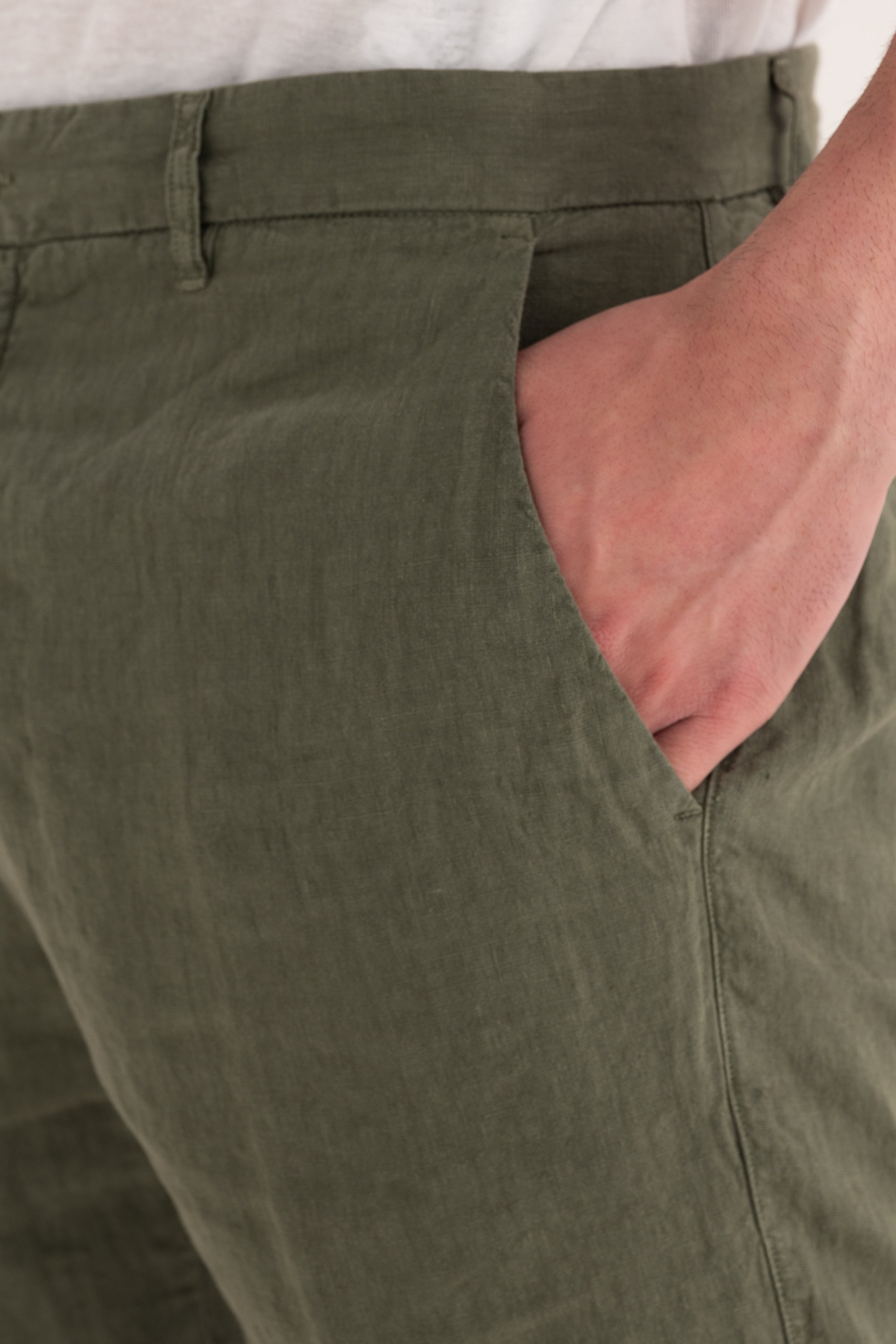 • Chino-style construction in pure linen