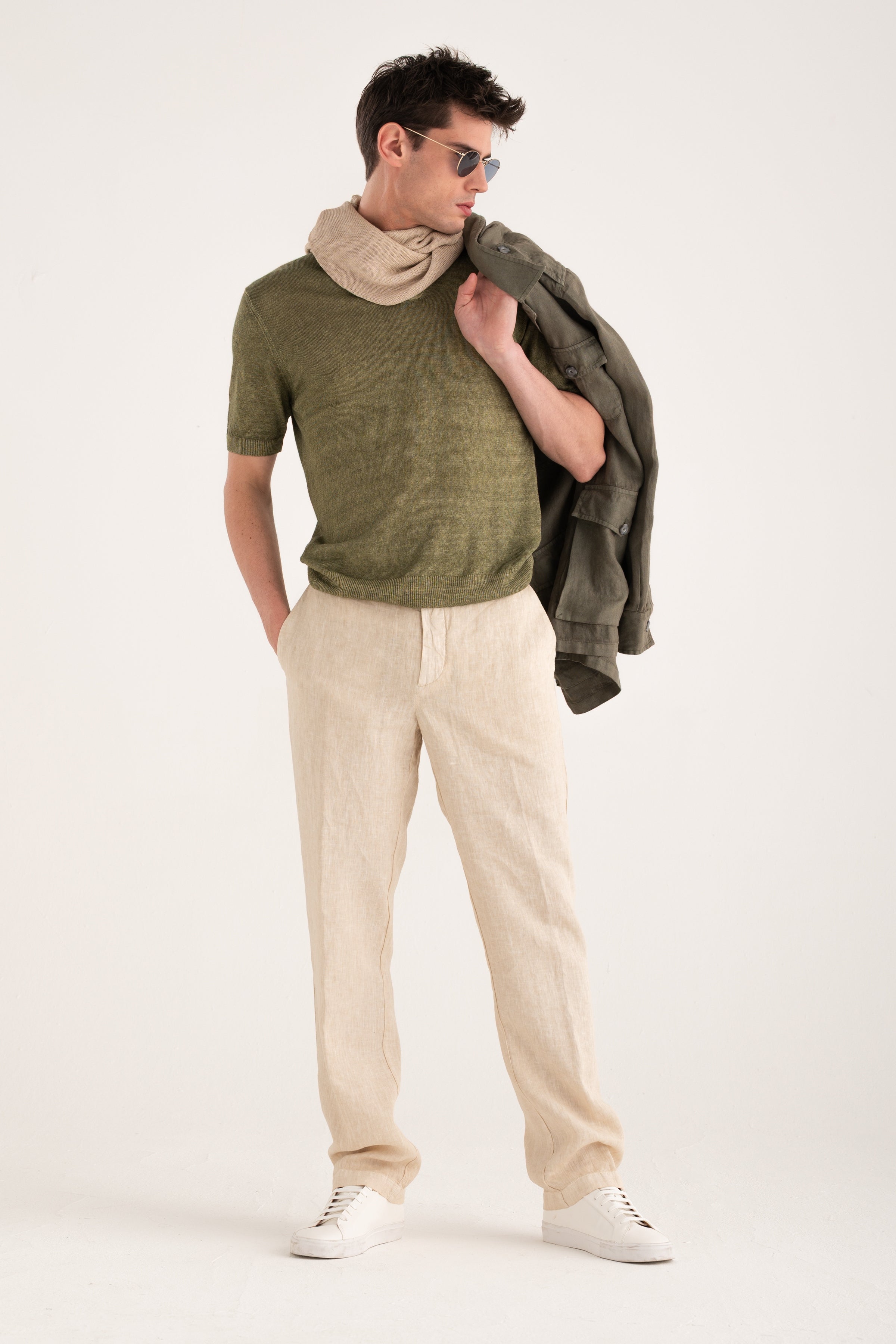A chino with a refined, tailored attitude, defined by clean lines and a regular fit. Its essential construction and precise detailing make it a versatile piece, ideal for polished yet effortless looks. The lightweight fabric offers freshness and comfort throughout the day.