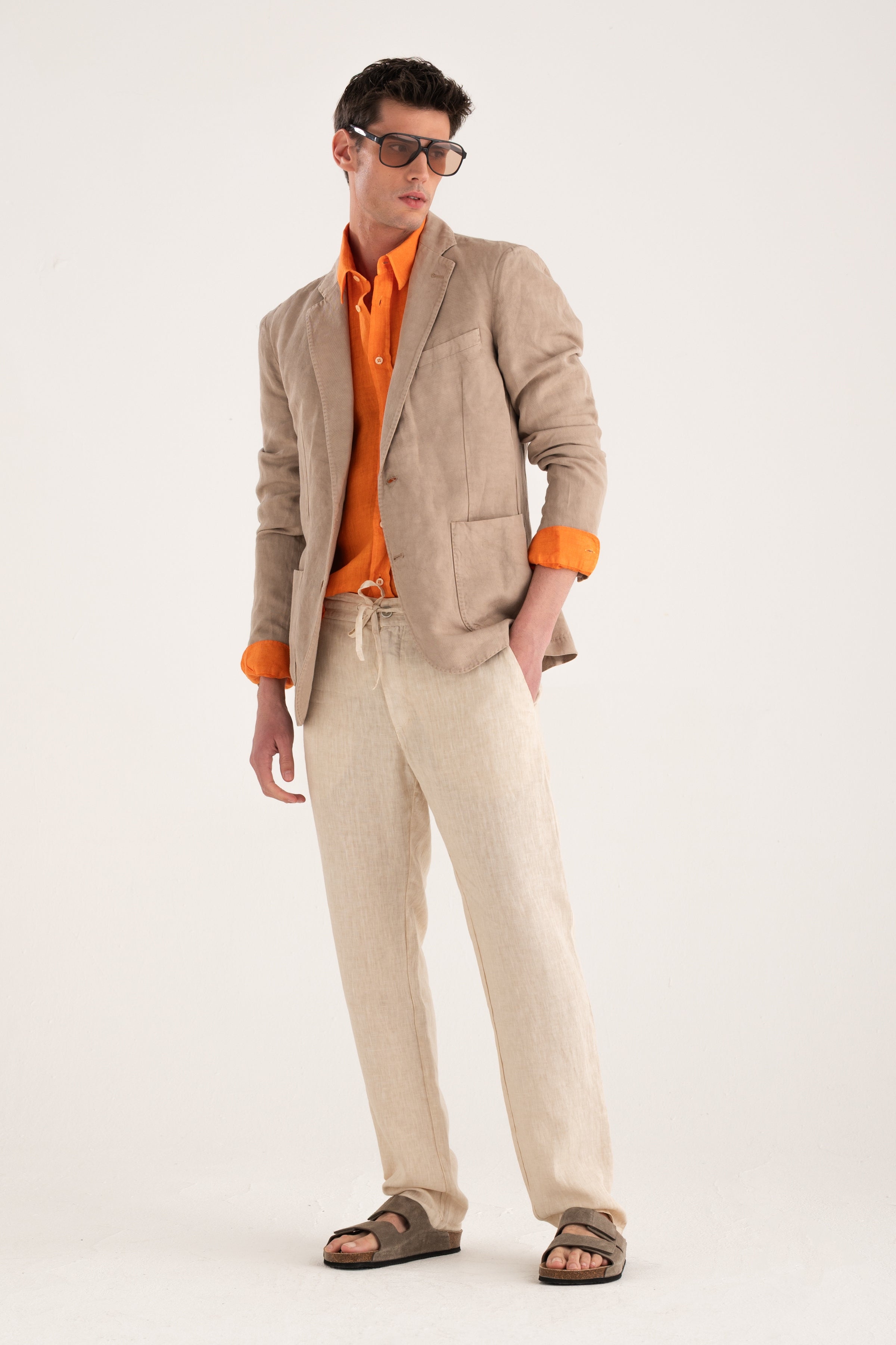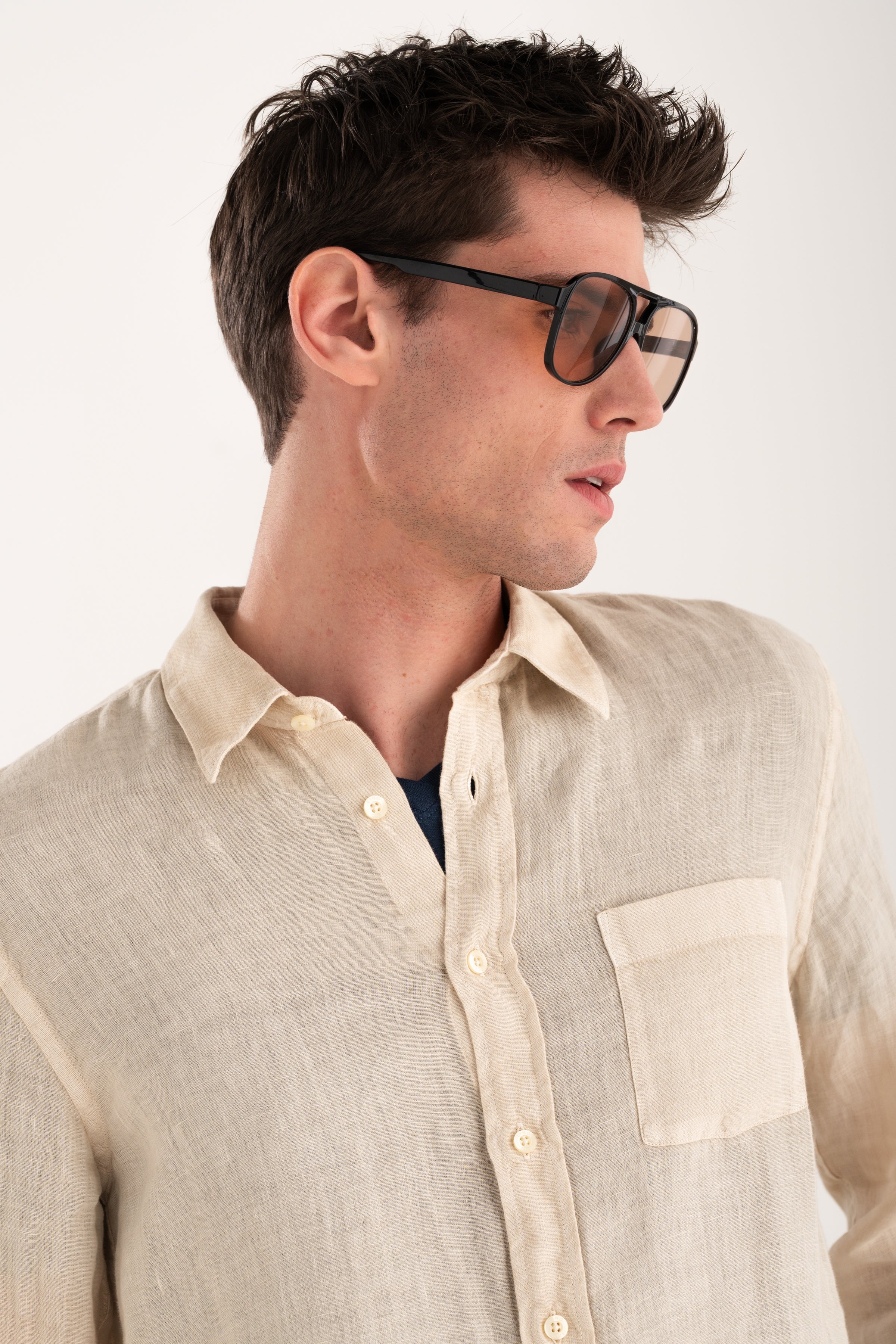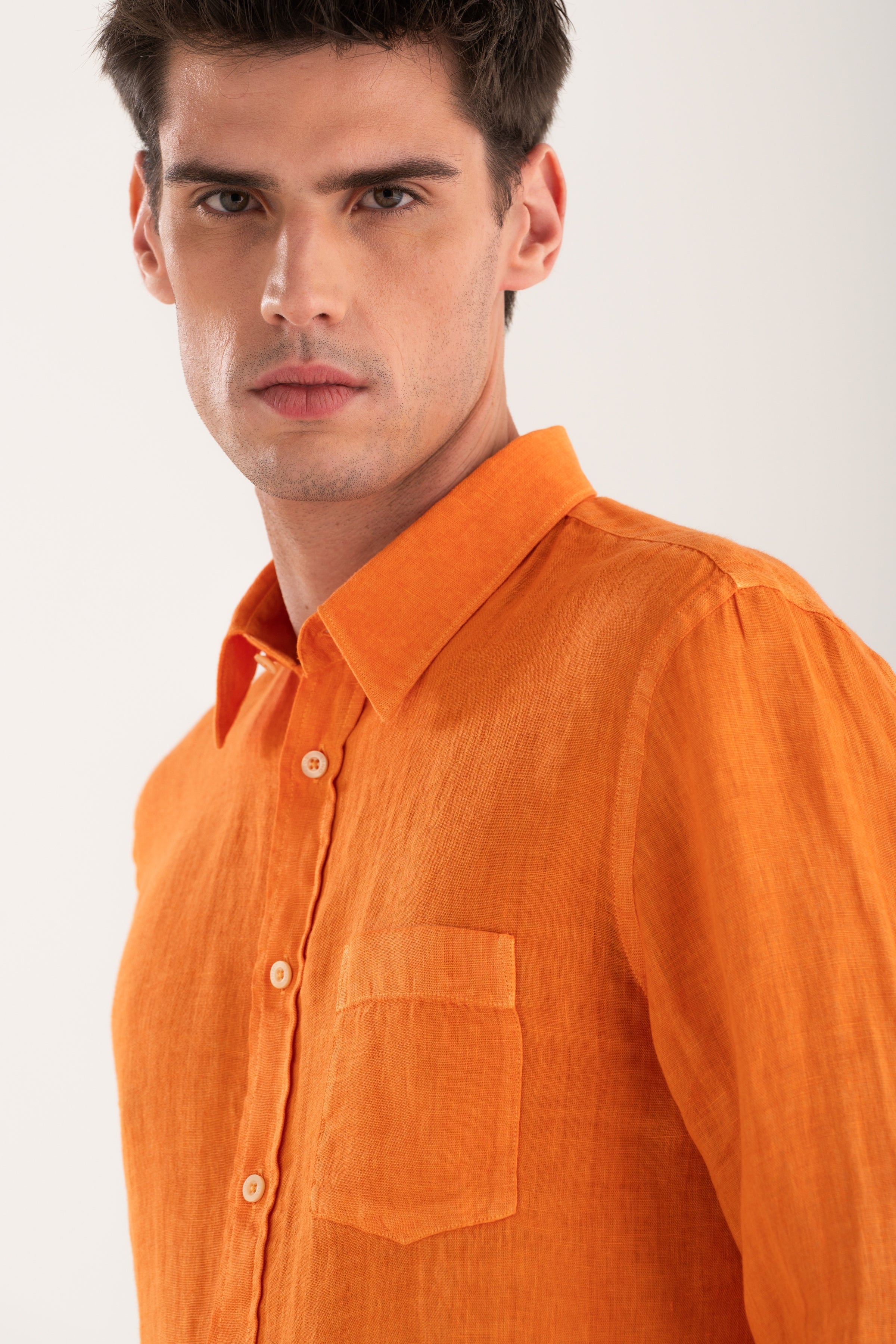 A shirt with a balanced, regular silhouette that combines comfort and refined simplicity. The clean design, featuring a classic collar and chest pocket, makes it a versatile wardrobe staple. Crafted from pure linen, it ensures a naturally lightweight and breathable feel, ideal for the warmer season.