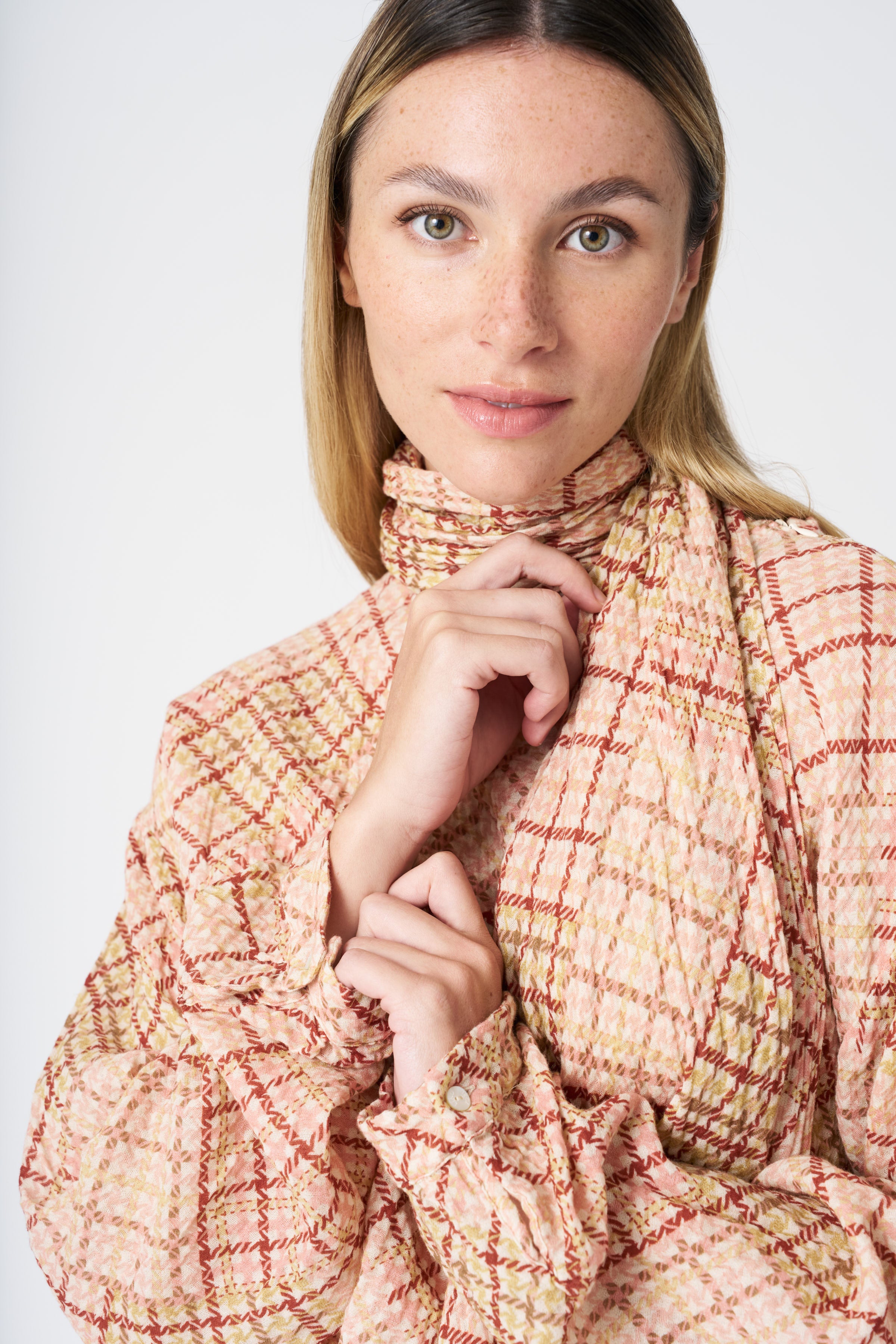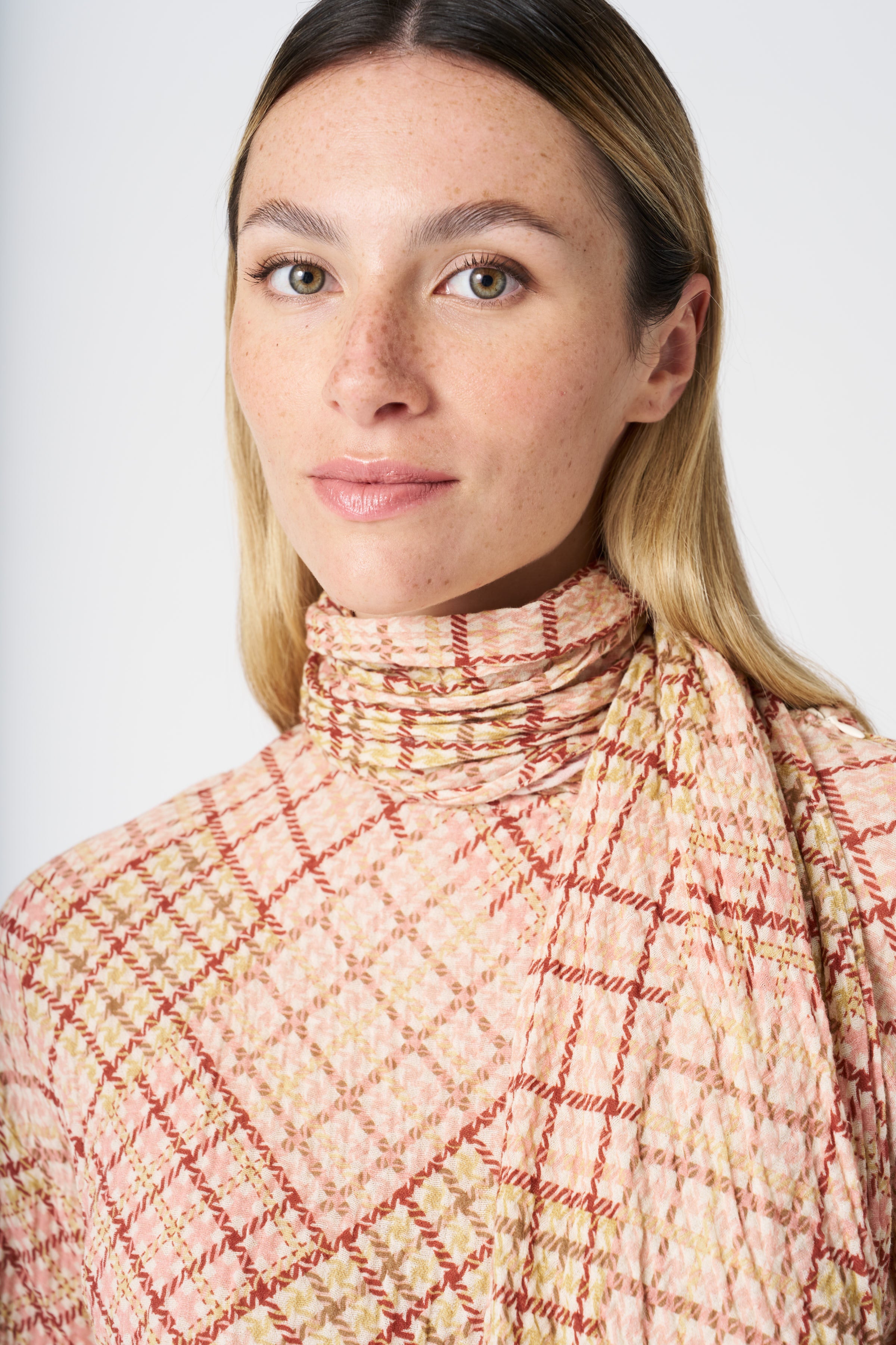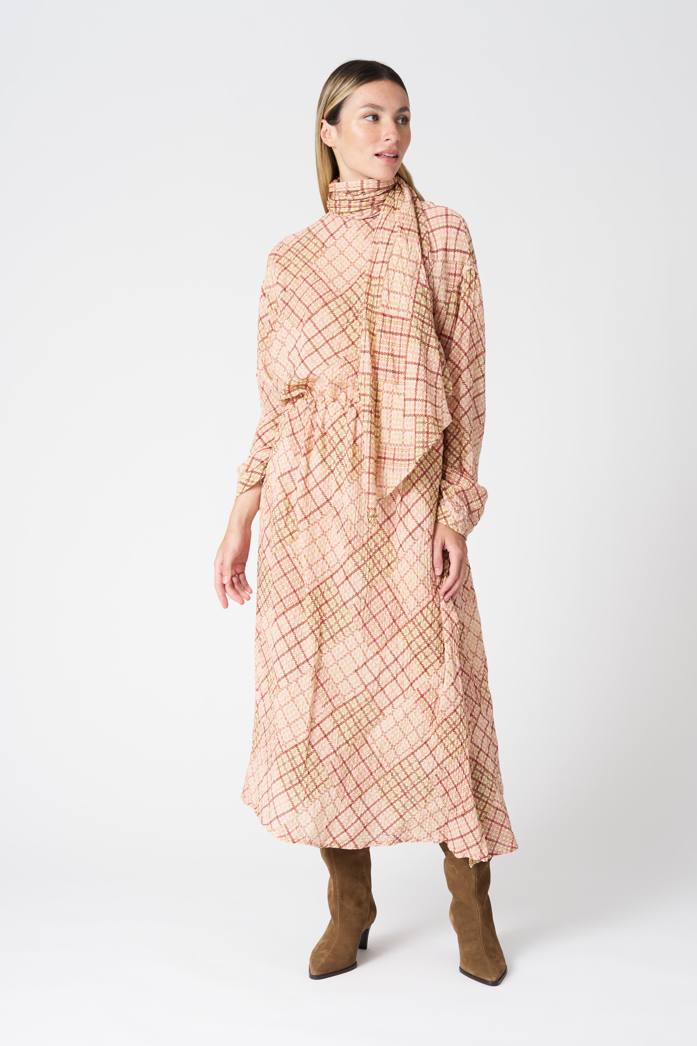 A flowing and refined dress, made from lightweight fabric that drapes naturally. The Geometric Pink motif gives the design a distinctive character, while the softly gathered waist defines the silhouette without compromising on comfort. A versatile piece designed to bring elegance to any occasion.
