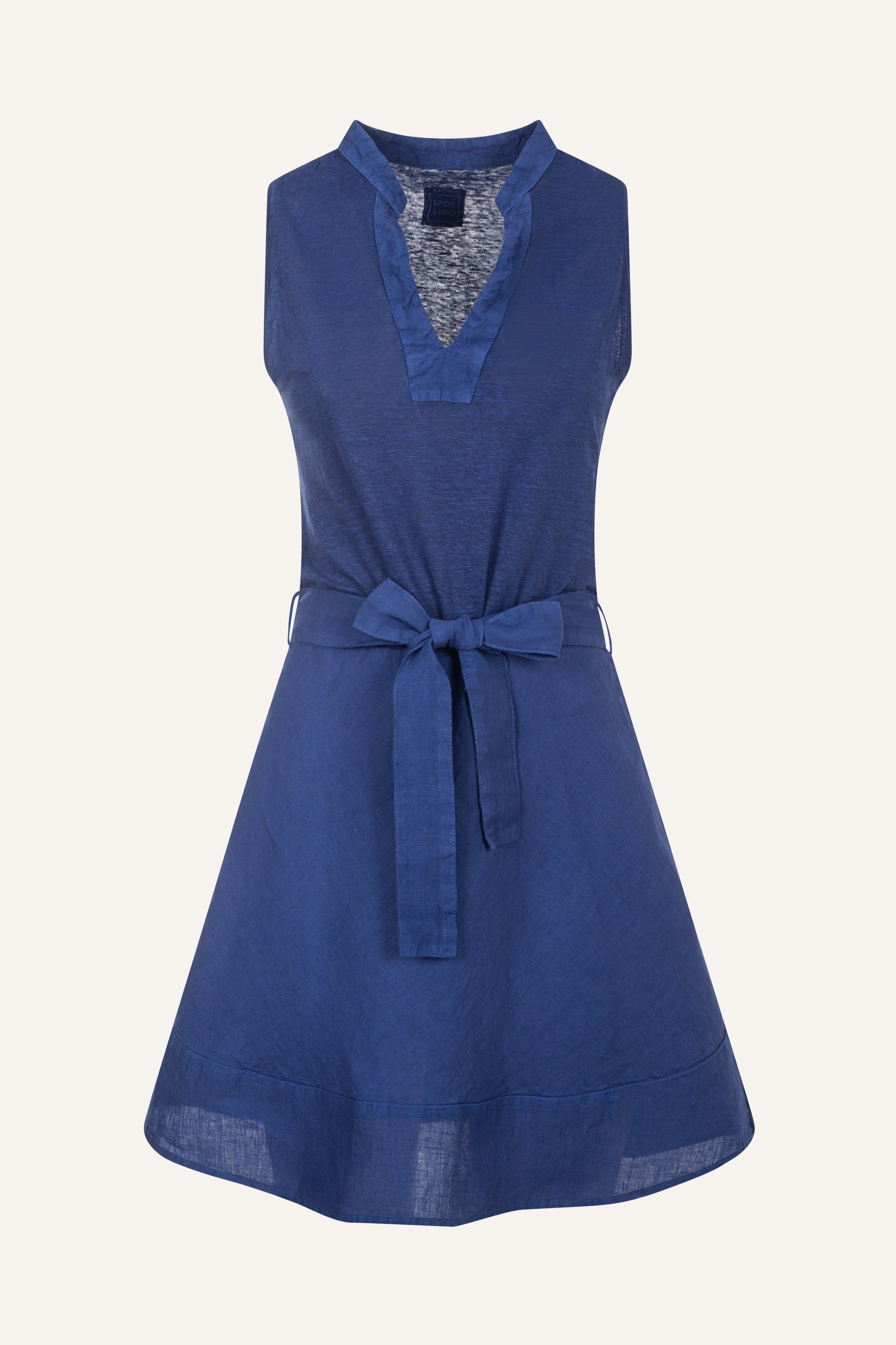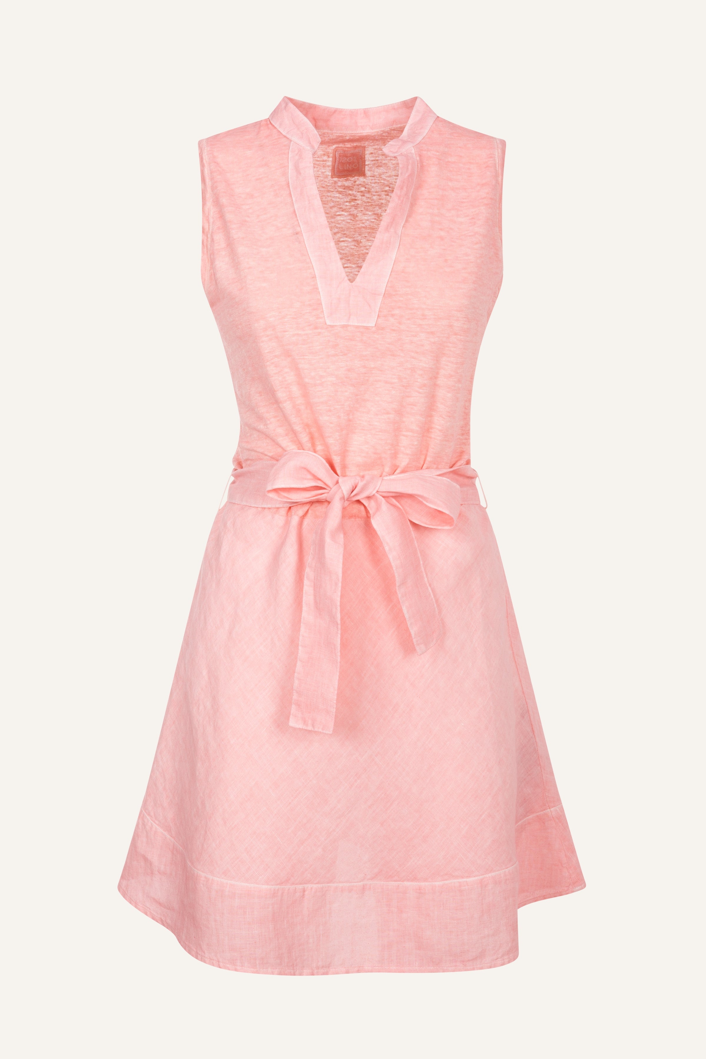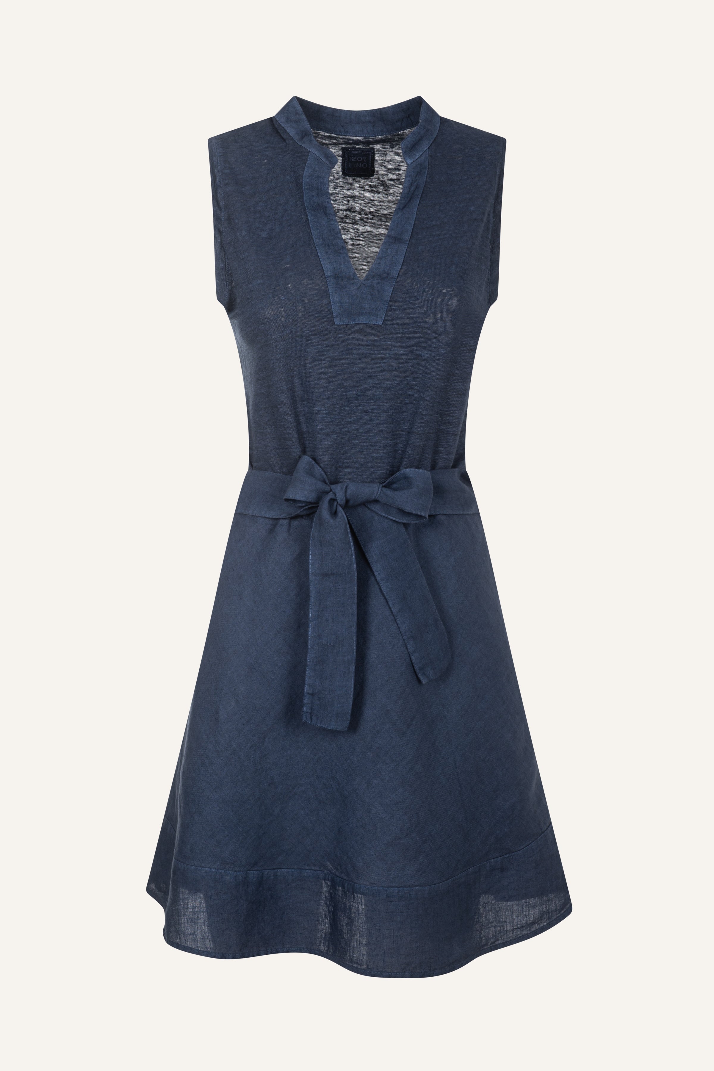 Crafted in soft jersey, this dress features a refined V-neckline with a rounded collar detail and a coordinated tie belt that defines the waist. The slightly flared skirt adds ease and movement, while the above-the-knee length makes it a versatile choice for everyday wear. An effortlessly stylish piece designed for a modern, relaxed elegance.