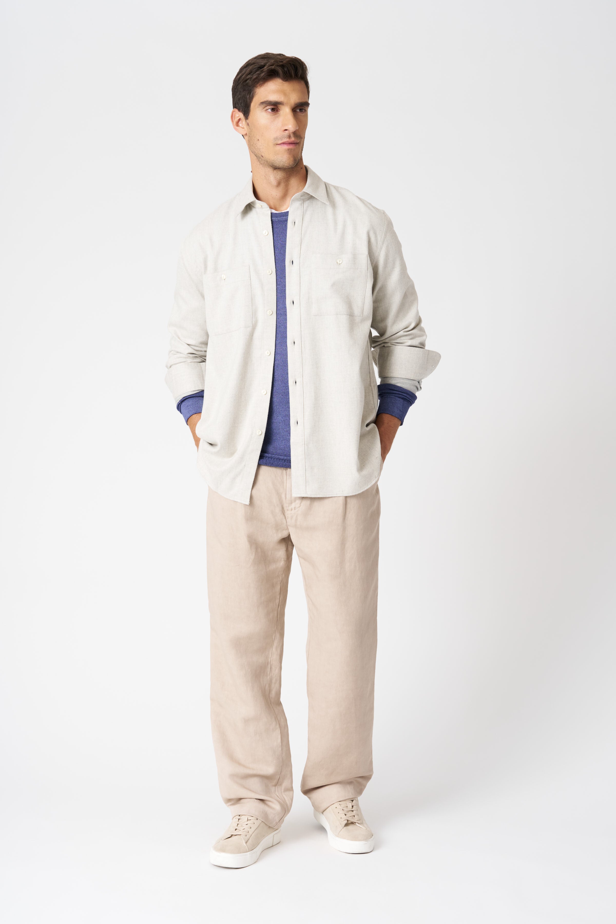 Long-sleeve crewneck sweater with a clean and versatile design. Crafted in lightweight knit fabric, it offers comfort and ease, perfect to wear on its own or layered under jackets and blazers. Its minimalist lines make it a timeless essential in the modern wardrobe.