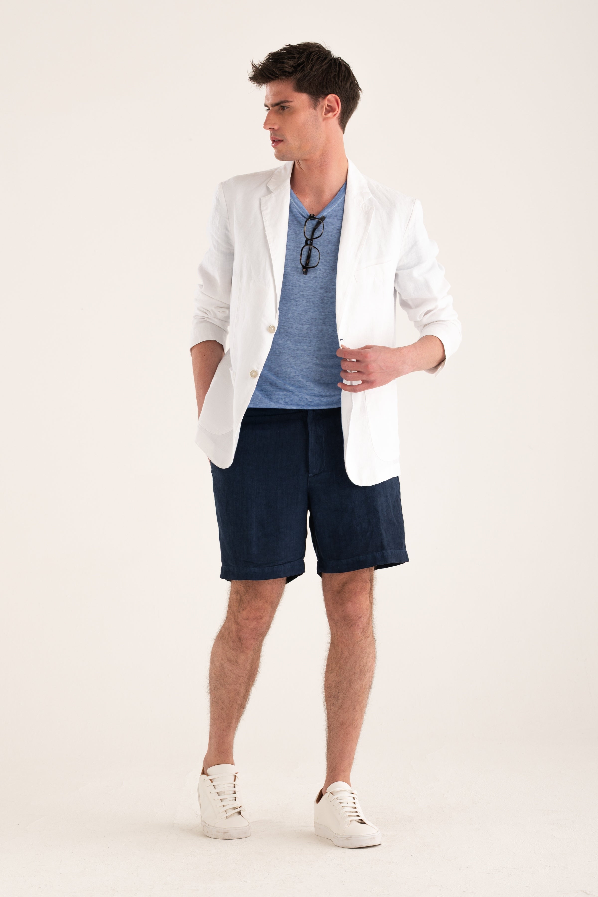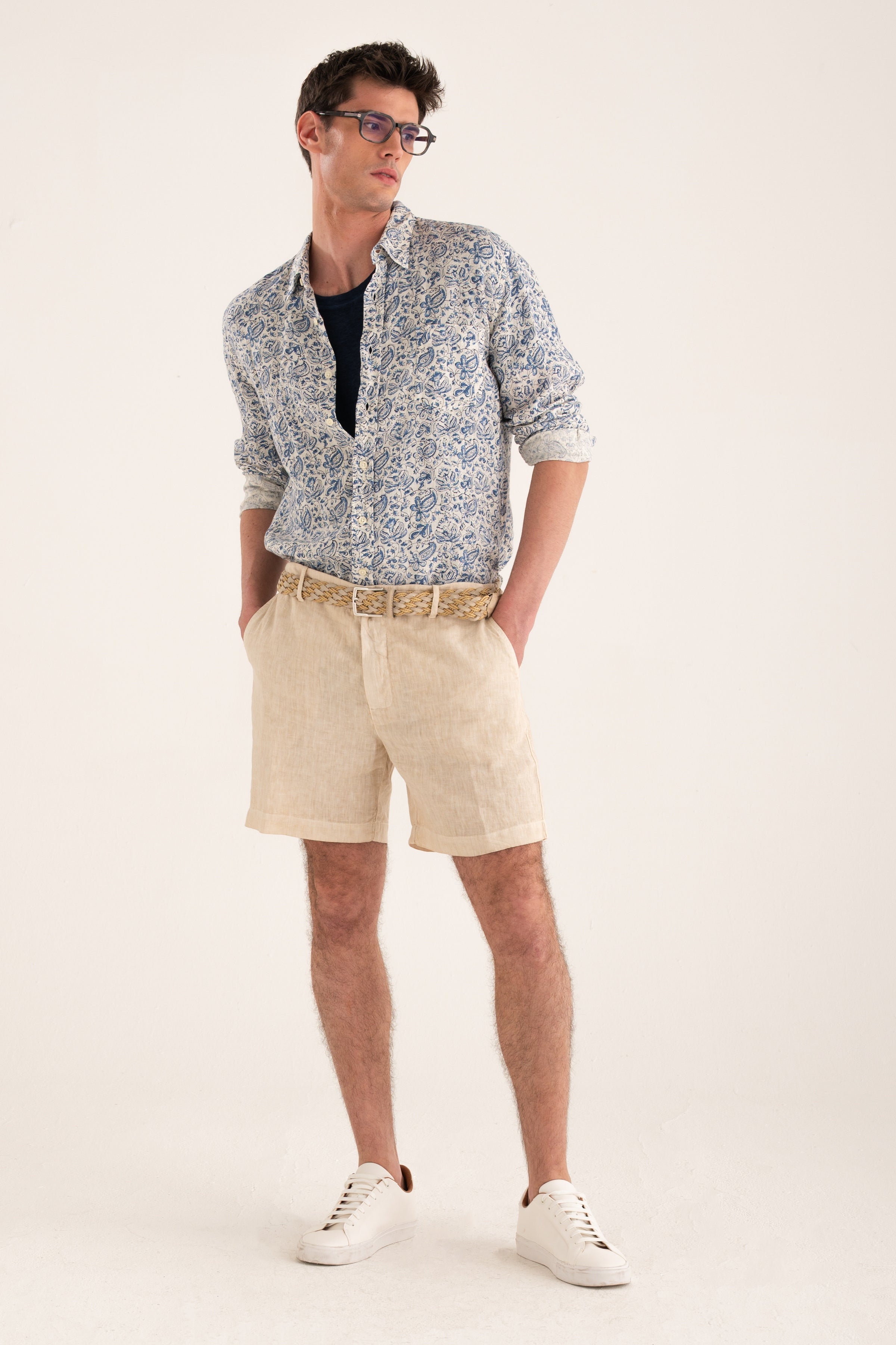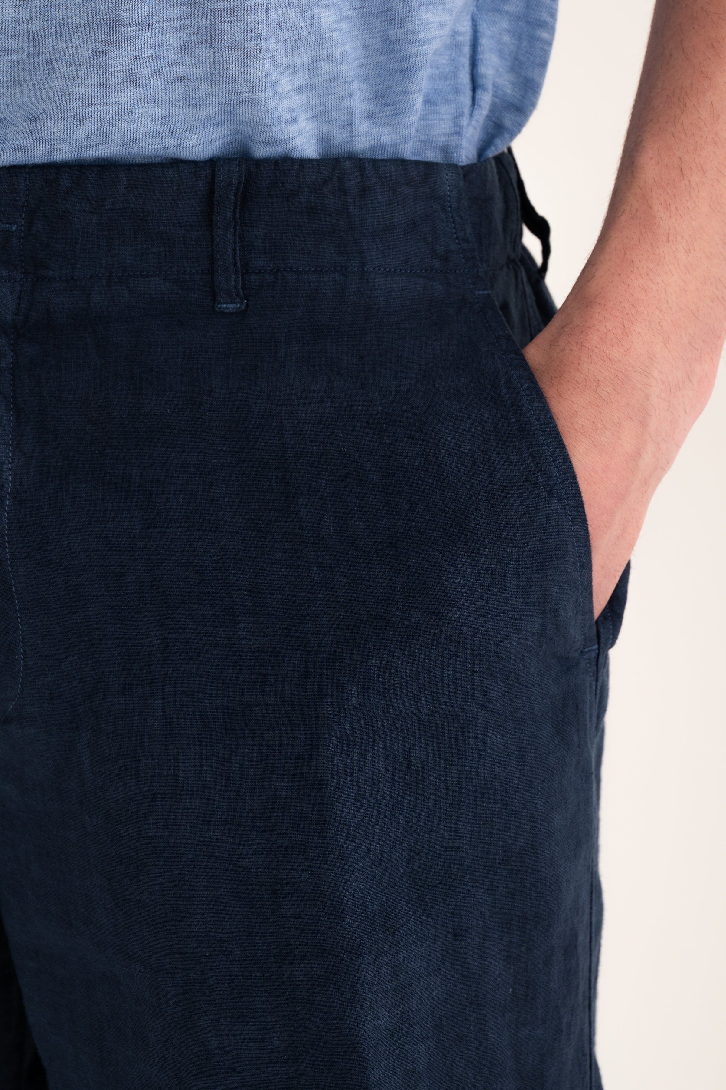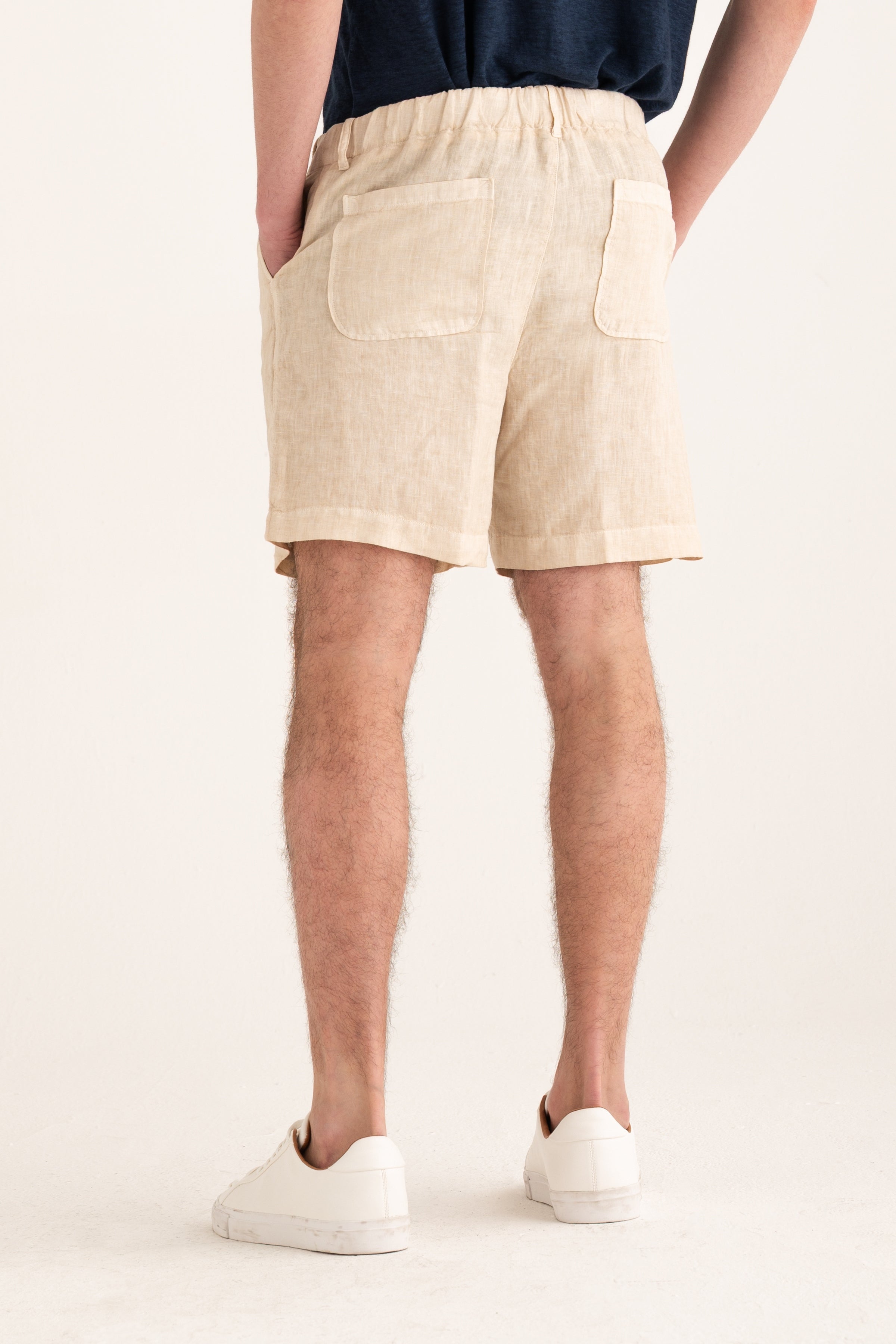 Pure linen shorts designed with a clean, essential aesthetic. Lightweight and breathable, they are ideal for warmer days, offering ease and understated refinement. The patch pockets on the back add character and practicality while maintaining a polished, versatile look.