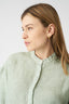 A refined and fresh piece, perfect for the summer season. This cropped linen shirt stands out with its mandarin collar, adding a touch of minimalist elegance. The short and wide design ensures a comfortable and versatile fit, ideal for pairing with high-waisted pants or skirts.