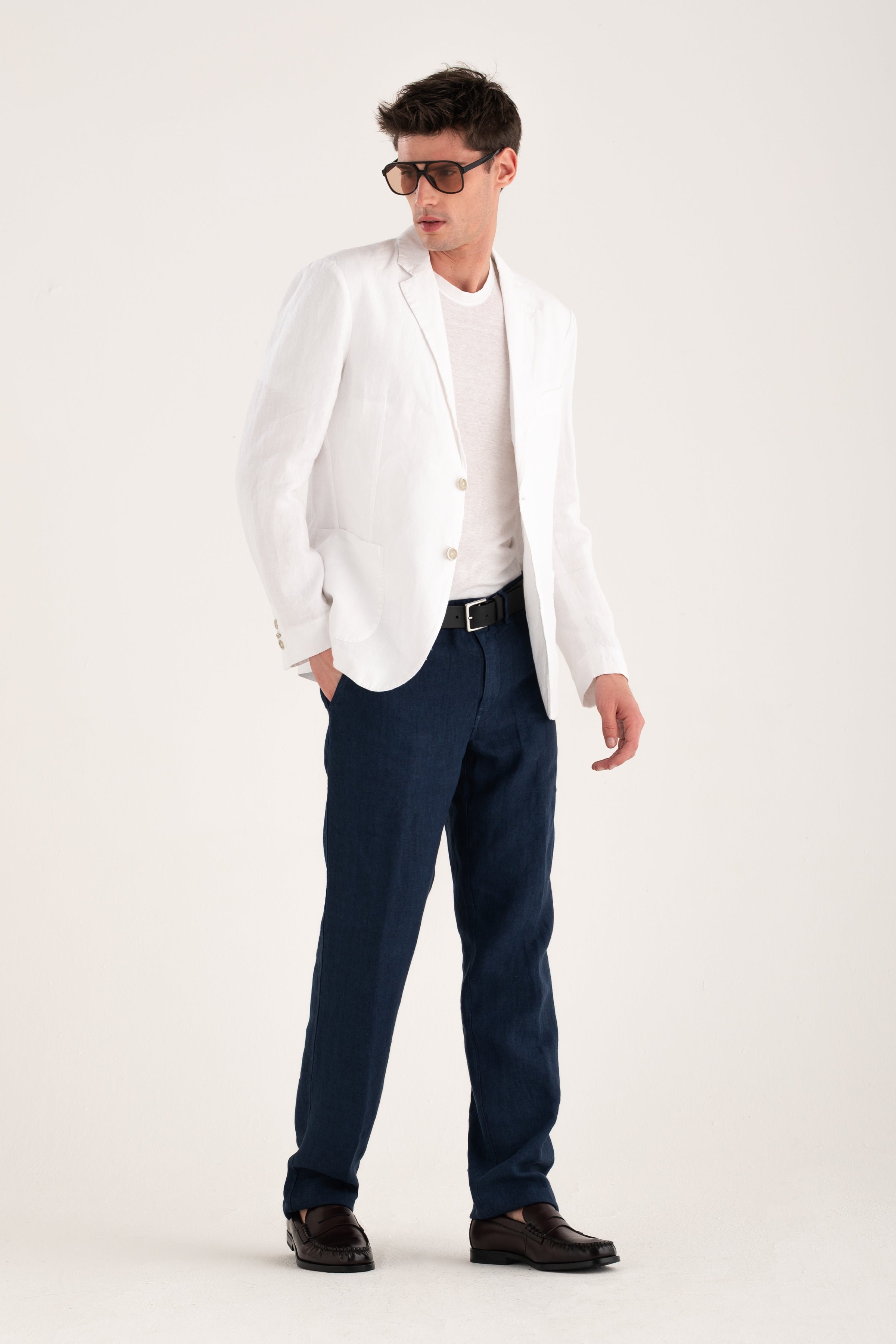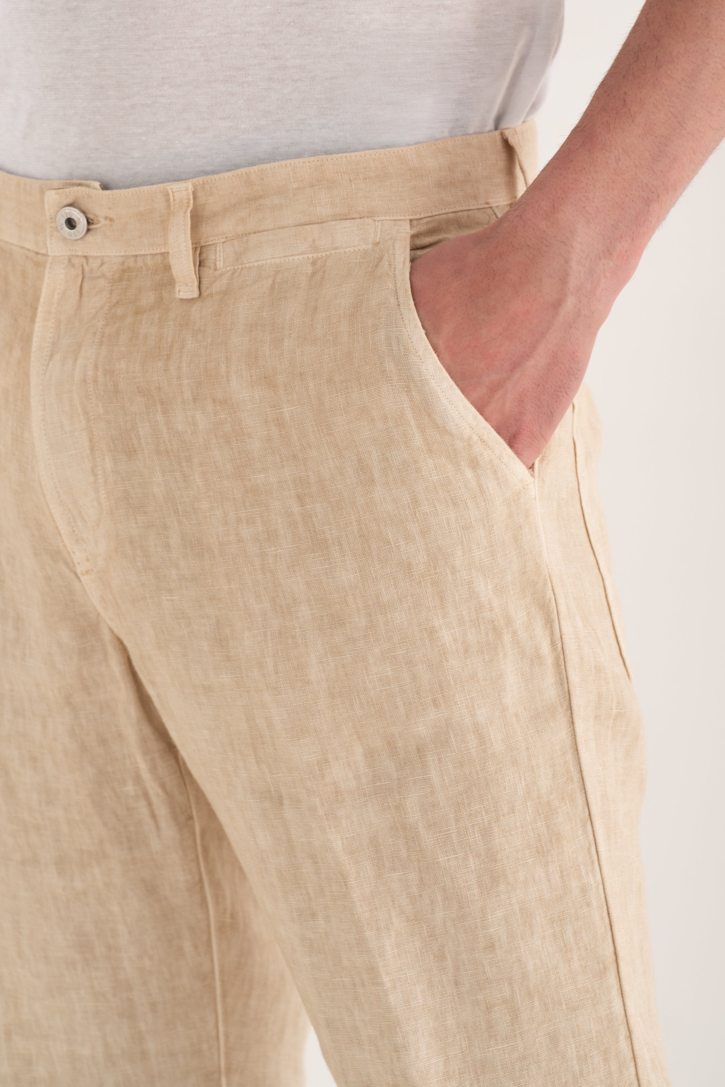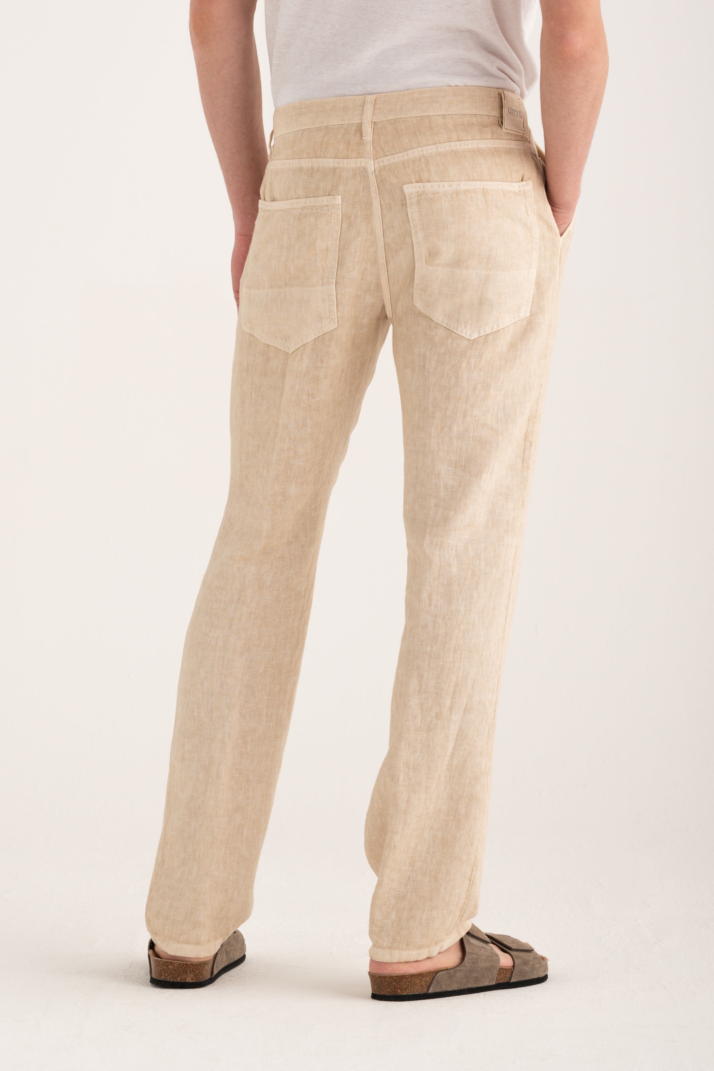 Linen trousers featuring back patch pockets, adding a refined utility-inspired touch. The straight leg and clean design make them versatile and ideal for any summer look. Lightweight, comfortable, and crafted to accompany the warm season with ease.