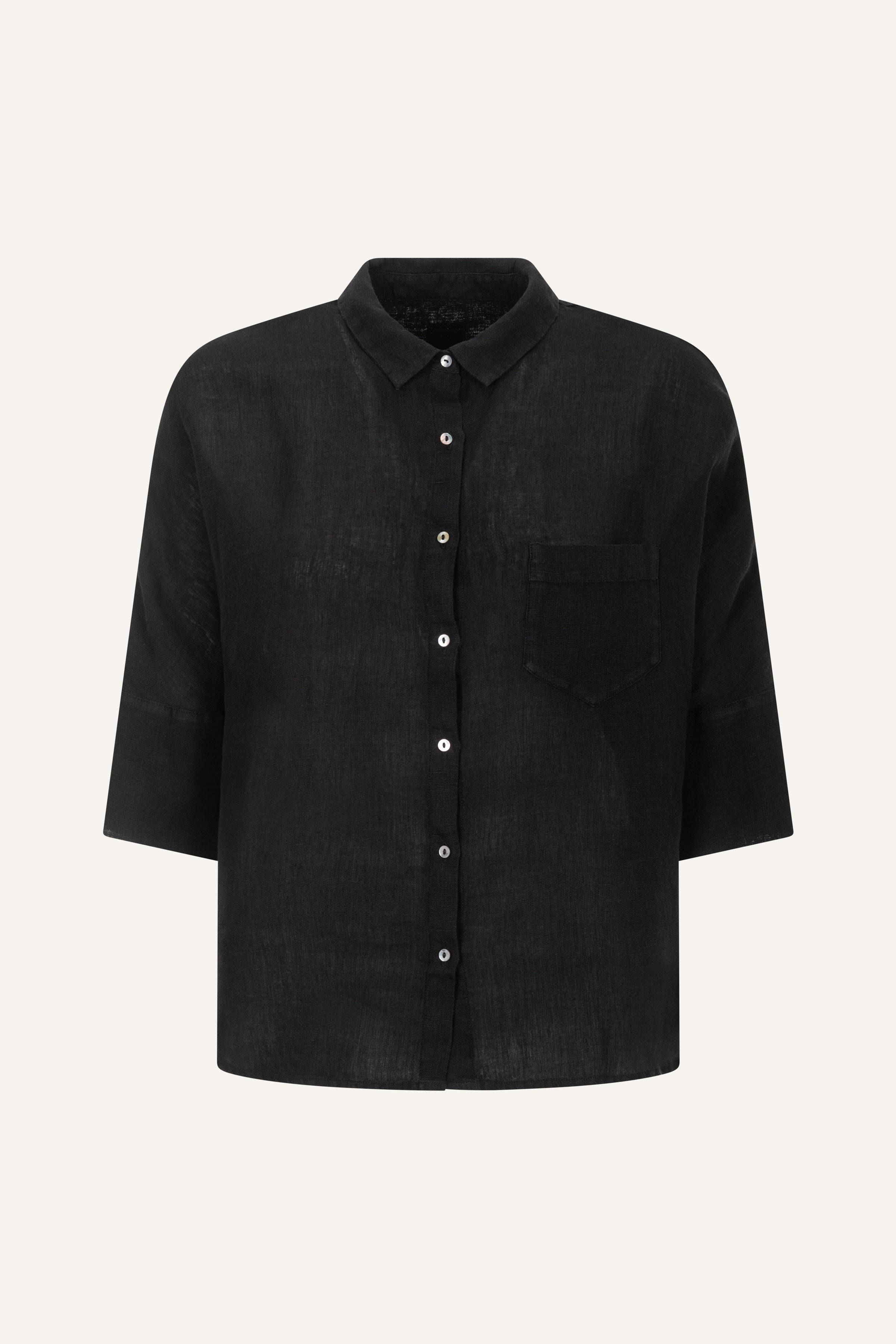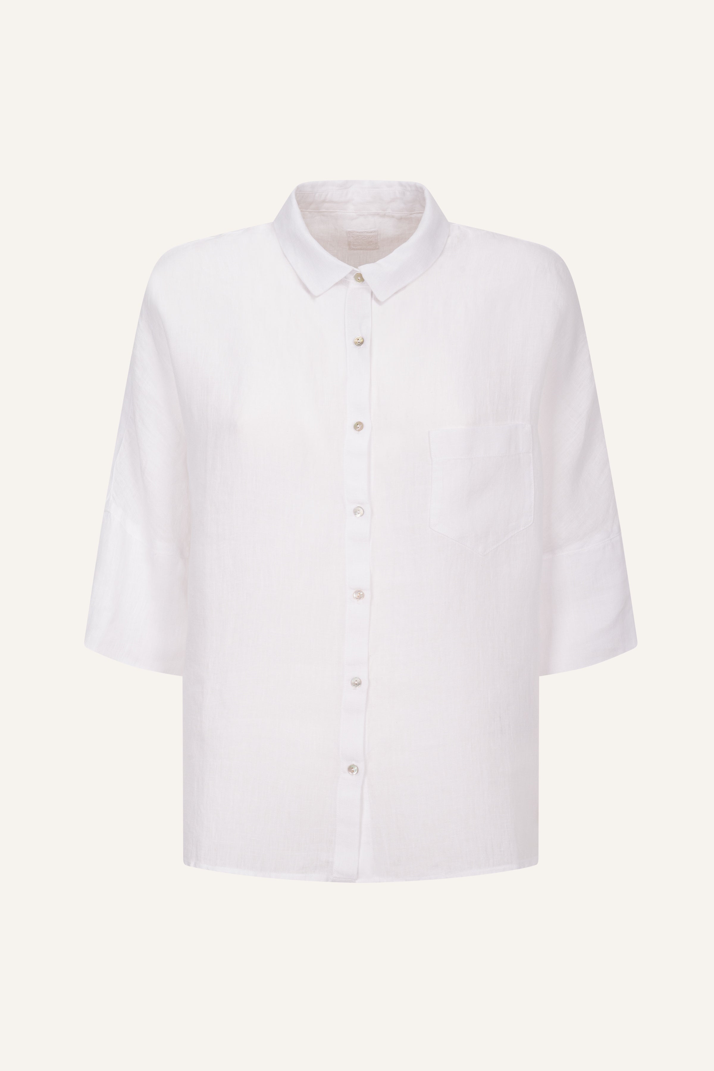Pure linen shirt with a relaxed cut, designed to offer lightness and ease of movement on warmer days. Its clean construction highlights the natural softness of the fabric, while the applied chest pocket adds a practical, contemporary touch. A versatile piece, perfect worn on its own or as a lightweight layer.