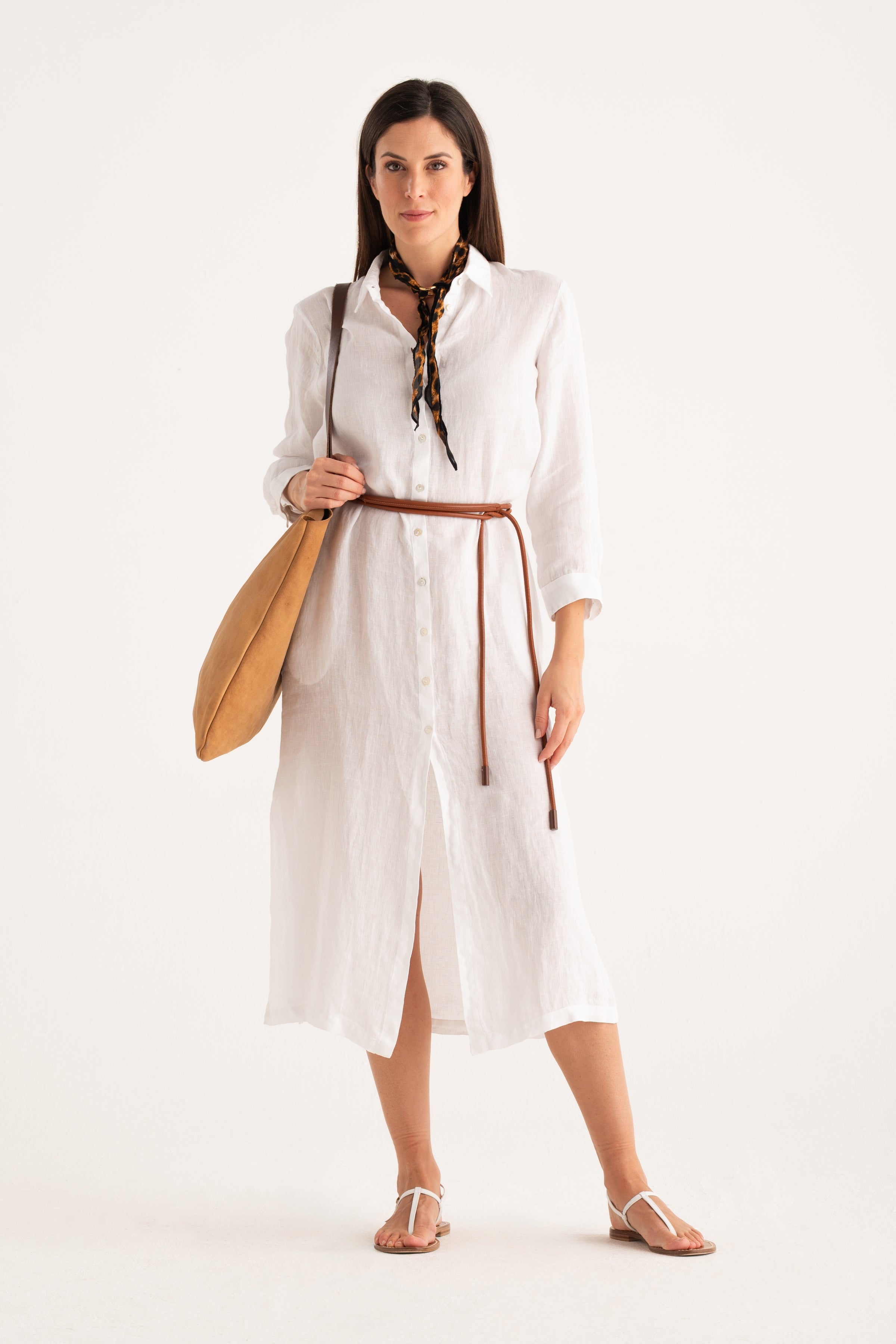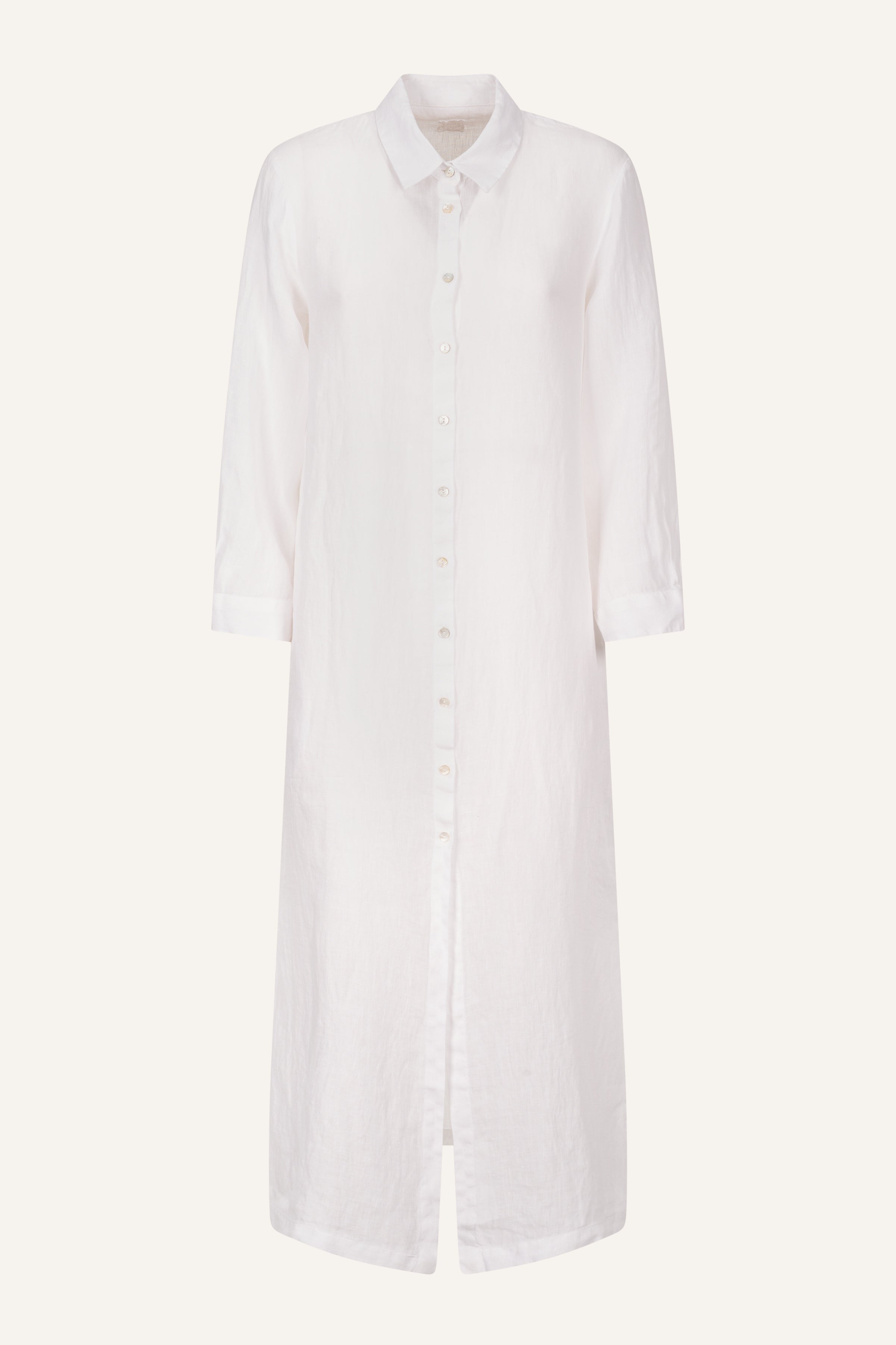 Crafted from pure lightweight linen, this long shirt dress blends freshness and essential design. The straight silhouette moves naturally with the body, while the full button placket and side slits make it versatile and effortless for any moment of the day.
