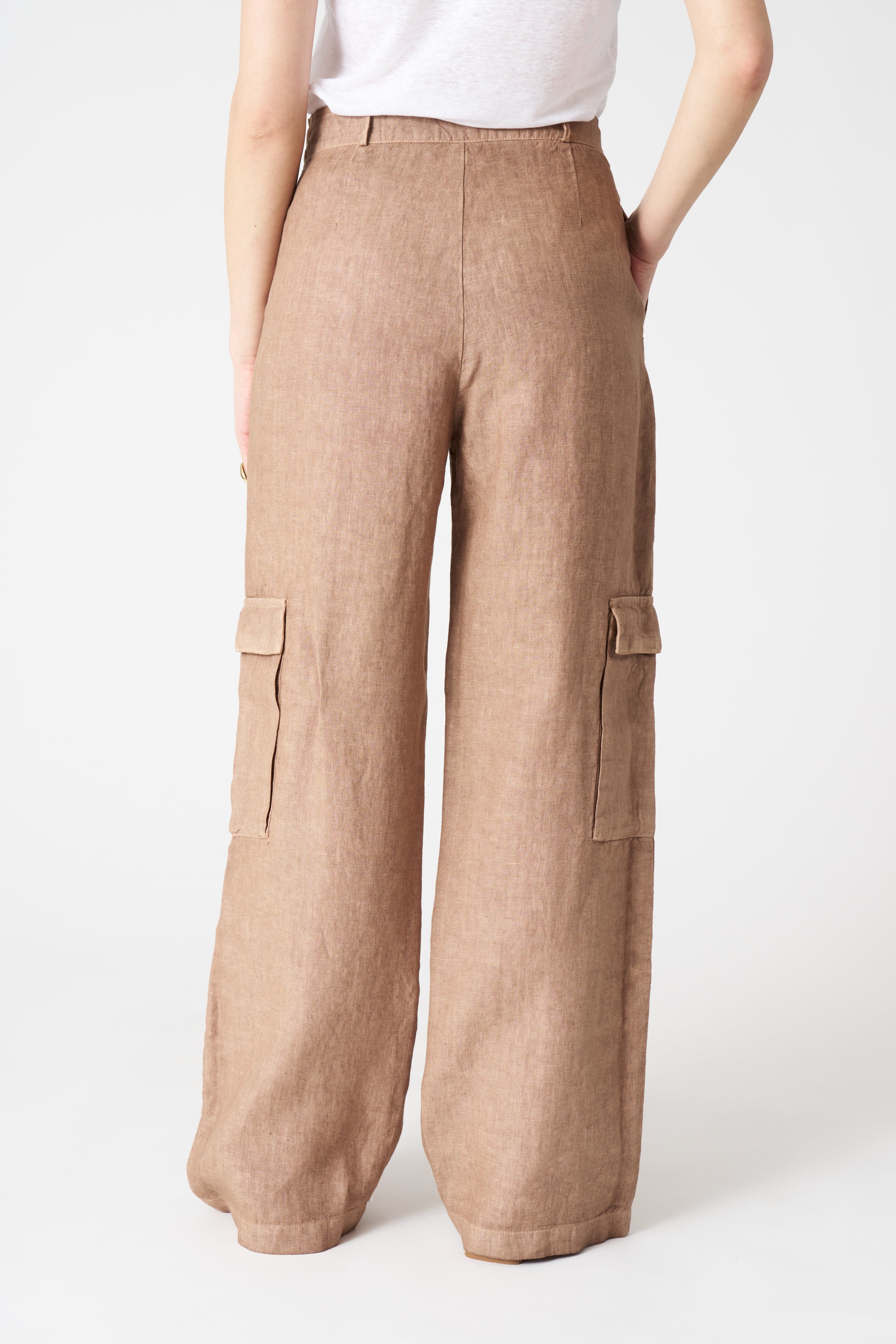 A relaxed and functional design that enhances the lightweight feel of linen. The side cargo pockets add a contemporary utility touch, while the wide-leg cut flows naturally with every step. A pant that embraces the elegance of soft volumes with ease.
